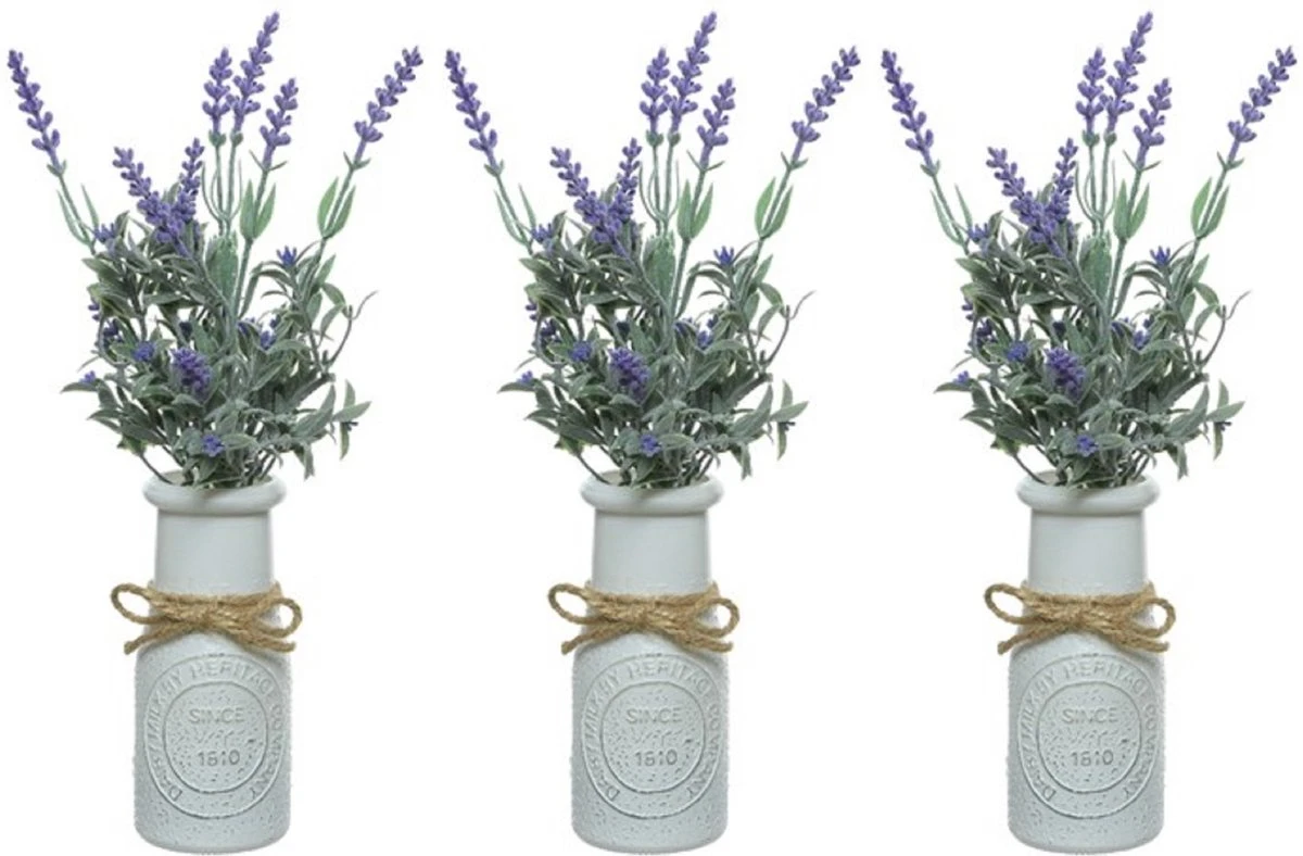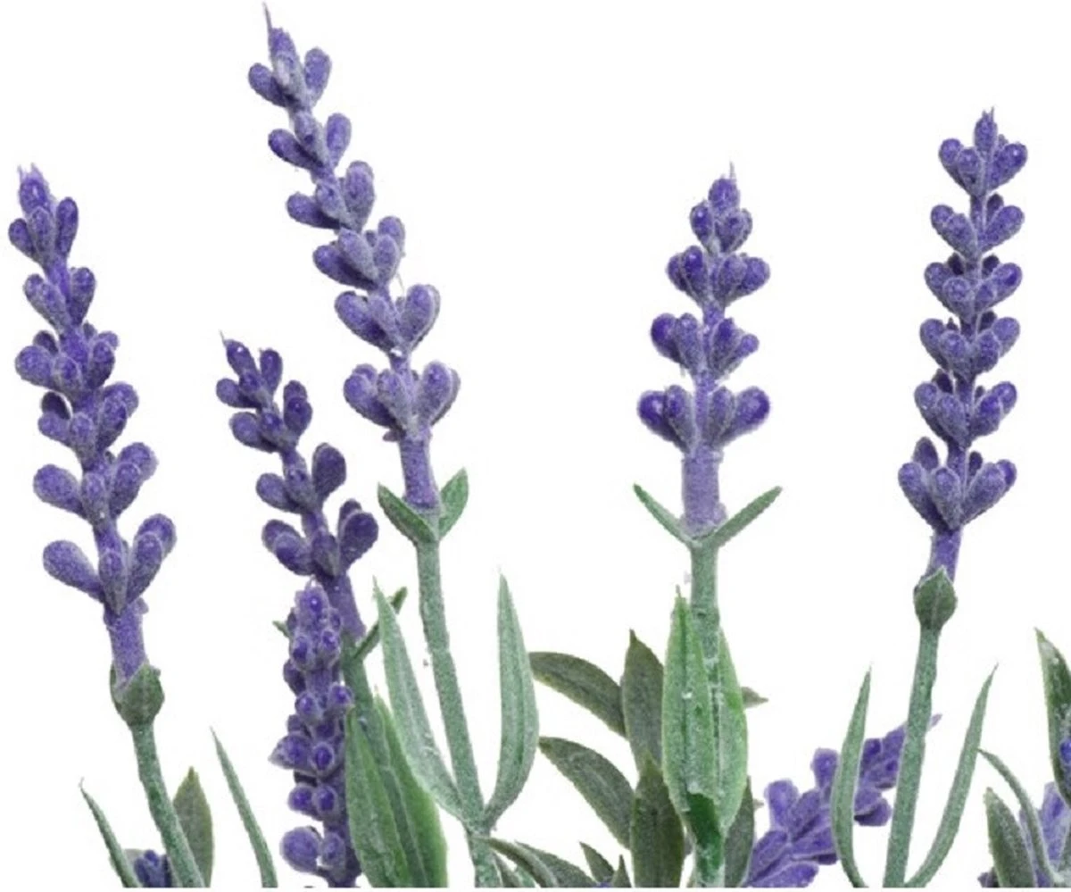 2x stuks paarse Lavandula/lavendel kunstplant 32 cm in witte pot. Zeer realistisch uitziende, onderhoudsvrije Lavandula/lavendel kunstplant met witte plantenpot. Materiaal: kunststof/plastic. Formaat plant: 32 cm hoog. Inclusief pot: ja. Diameter pot: 7 cm. Nepplanten/kunstplanten woondecoraties voor in huis.