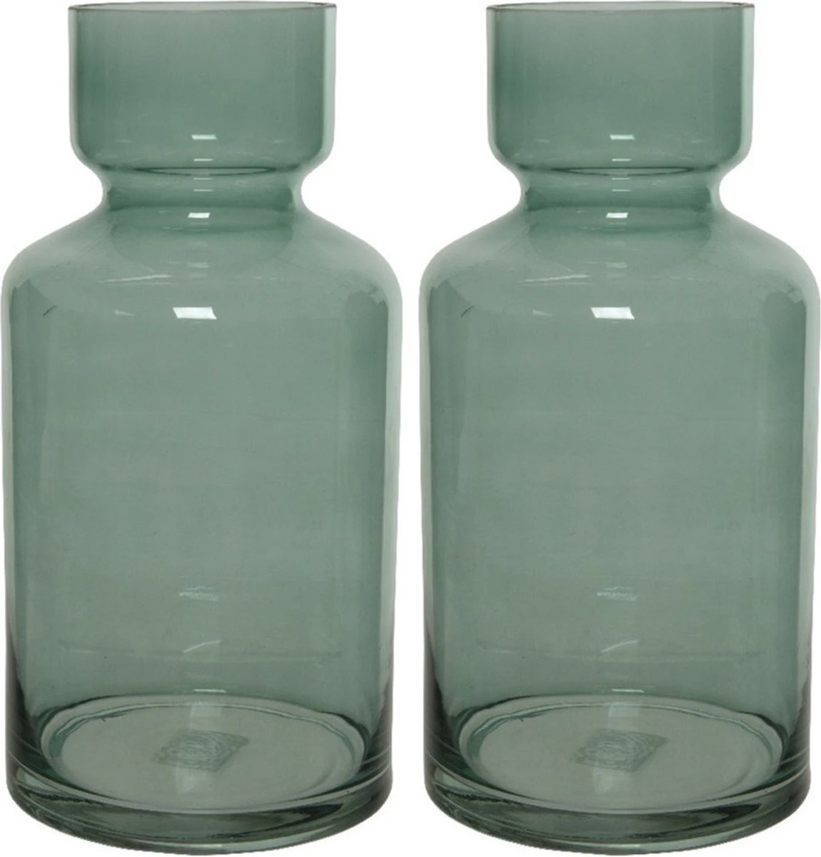 Groene vazen/bloemenvaas 6 liter van glas 15 x 30 cm. Een glazen vaas, welke een smallere hals heeft. Geschikt om een boeket of losse bloemen/takken in te plaatsen of leuke (seizoensgebonden) decoratie.