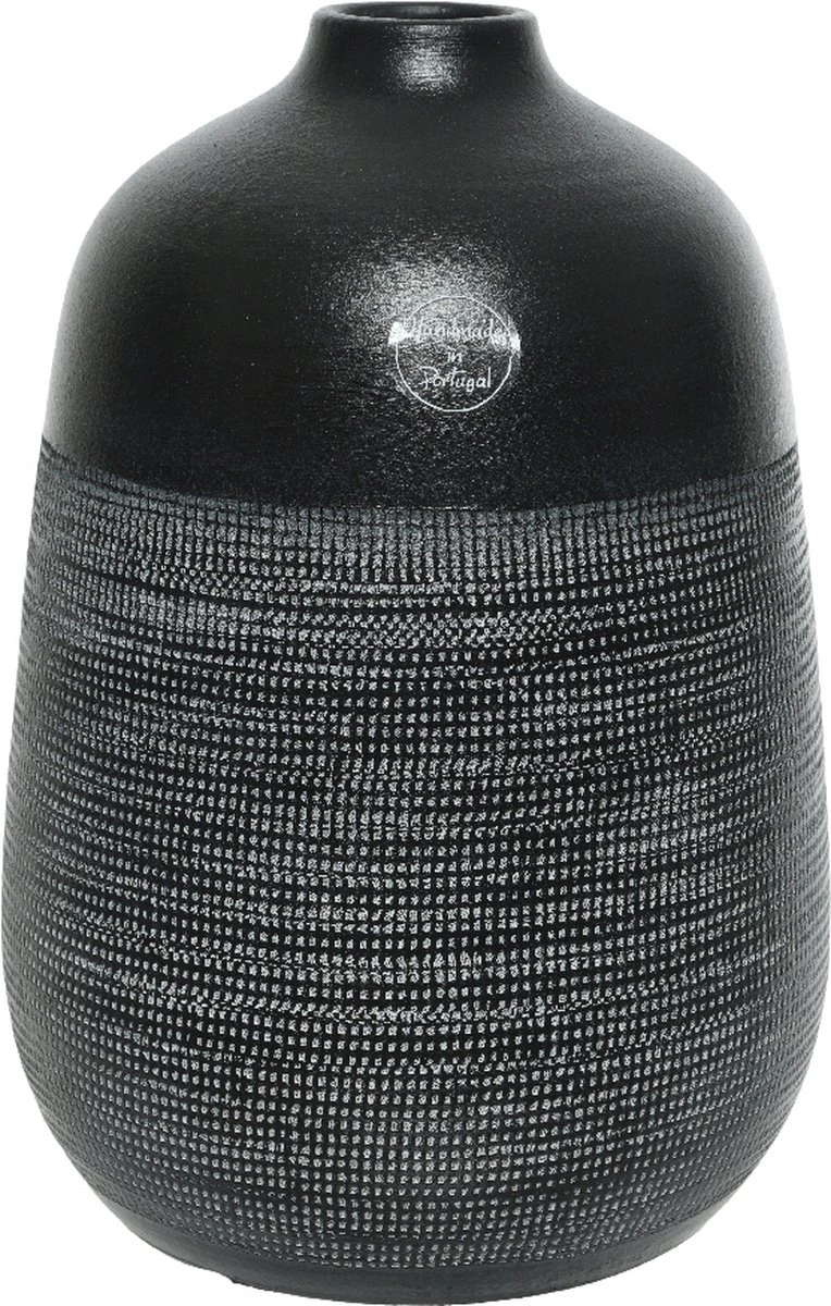 Vase décoris fait à la main au Portugal de la terre cuite avec sa finition de structure lisse et textile est un vase frappant Ø25x40cm noir.