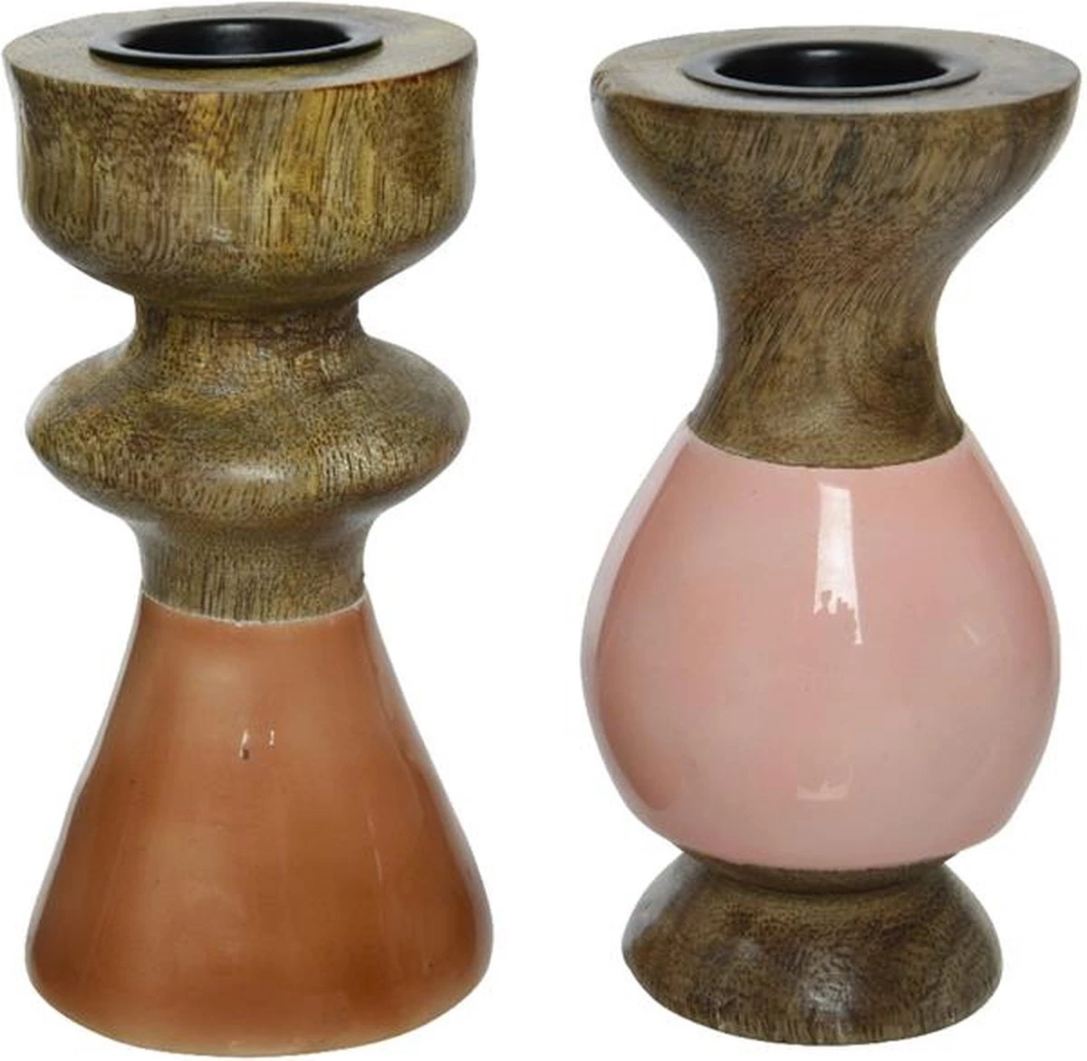 Decoris Kandelaar mangohout Ø5-H10cm. Kleur: roze. Materiaal: Hout .