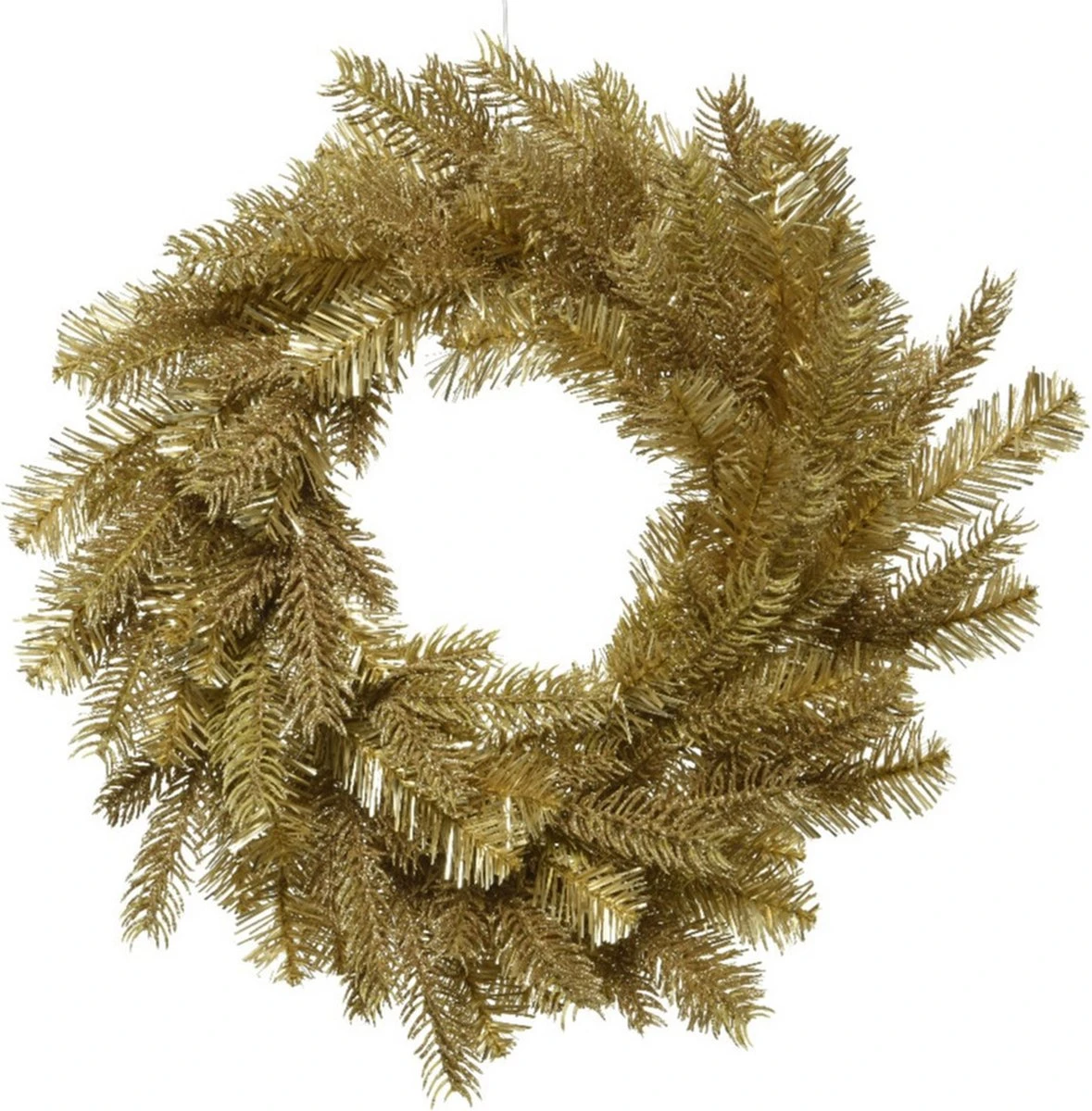 - 1x Kerstkrans/dennenkrans goud glitter 50 cm
