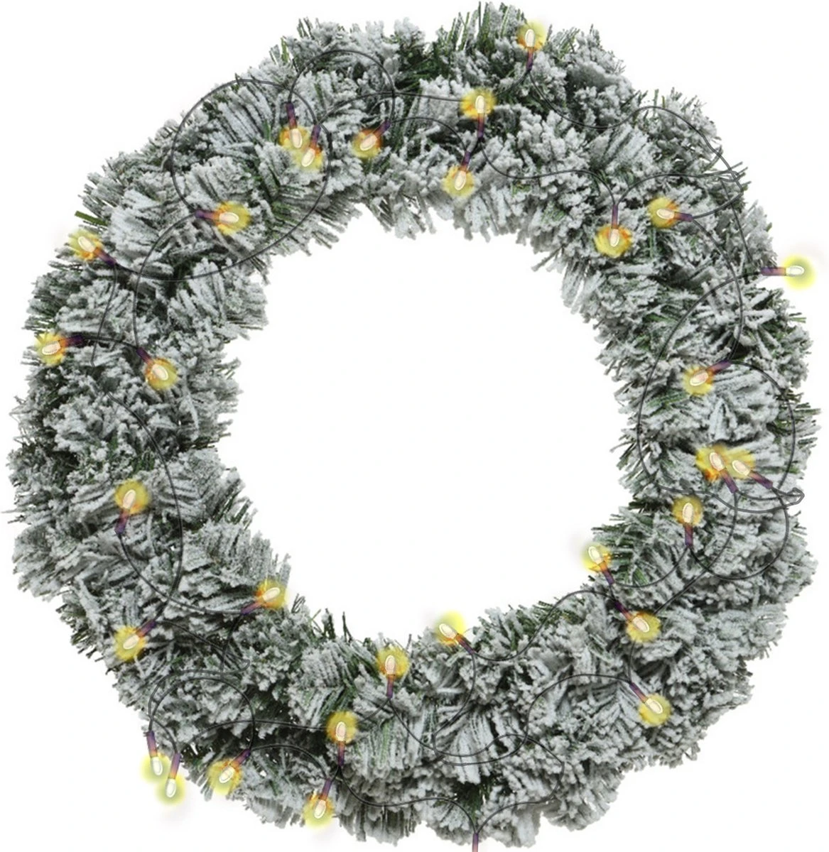 Kerstkrans/dennenkrans groen met sneeuw 35 cm incl. verlichting warm wit. Kerstkrans/dennenkrans inclusief verlichting warm wit. Aantal lampjes: 48. Lengte lichtsnoer: 4 meter. Formaat krans: D35cm.