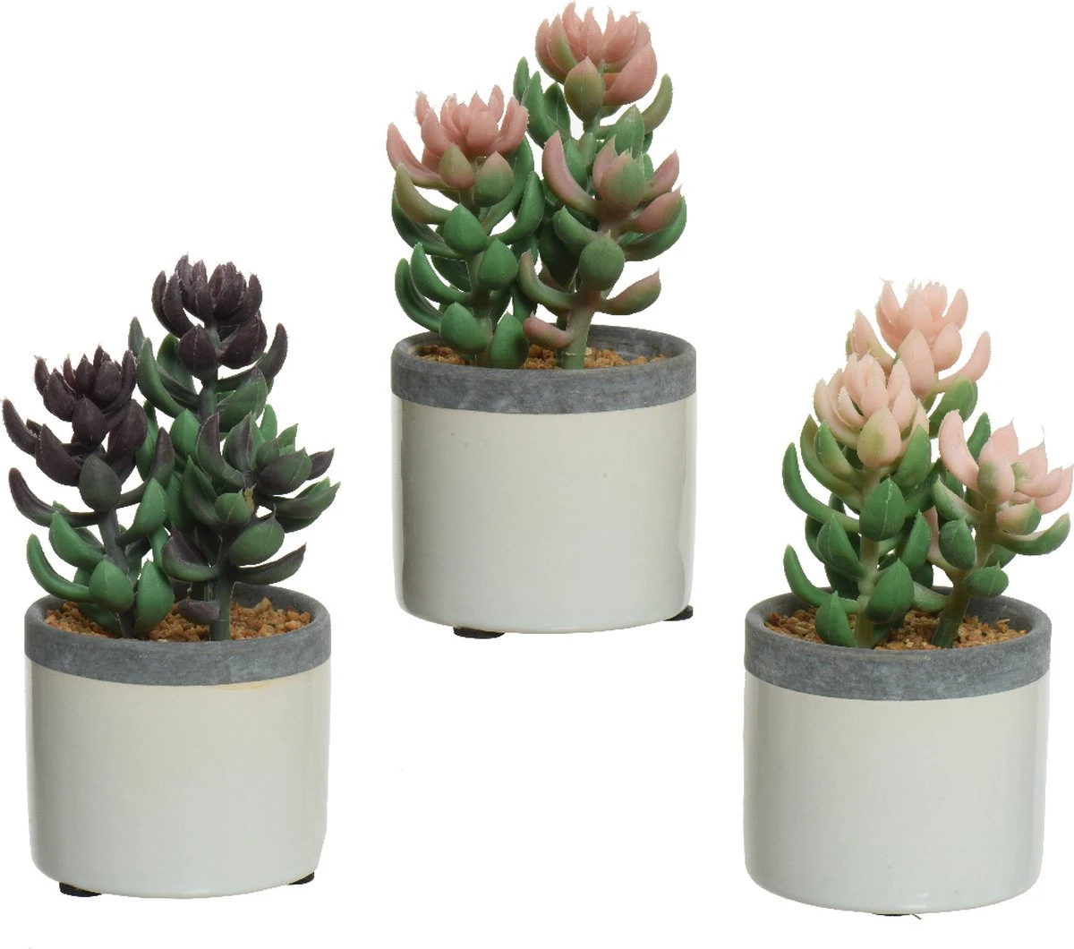 Decoris Kunstplant Vetplant In Pot Keramiek L7.5-B7.5-H14cm- Verkrijgbaar In 3 Verschillende Kleuren