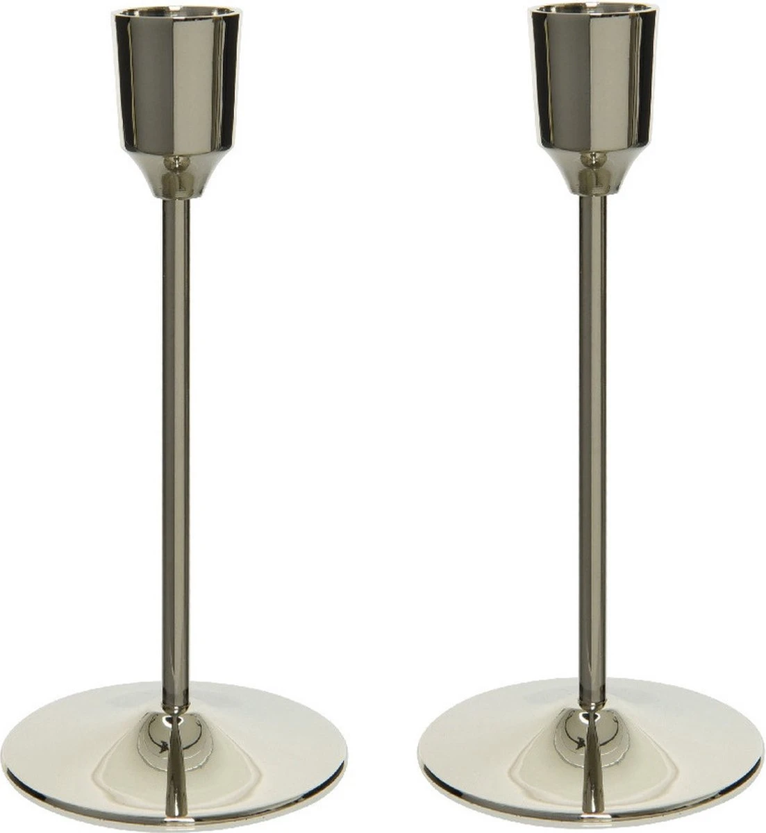 Decoris Set Van 2x Stuks Luxe Diner Kaarsen Staande Kandelaar Aluminium Kleur Zilver 20 Cm – Diameter Onderkant 7 Cm