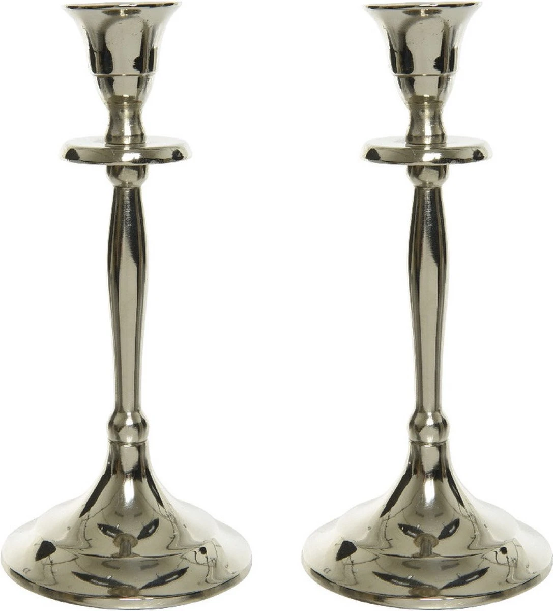 Set van 2x stuks luxe diner kaarsen staande kandelaar aluminium kleur zilver 20 cm. Diameter onderkant is 9 cm.