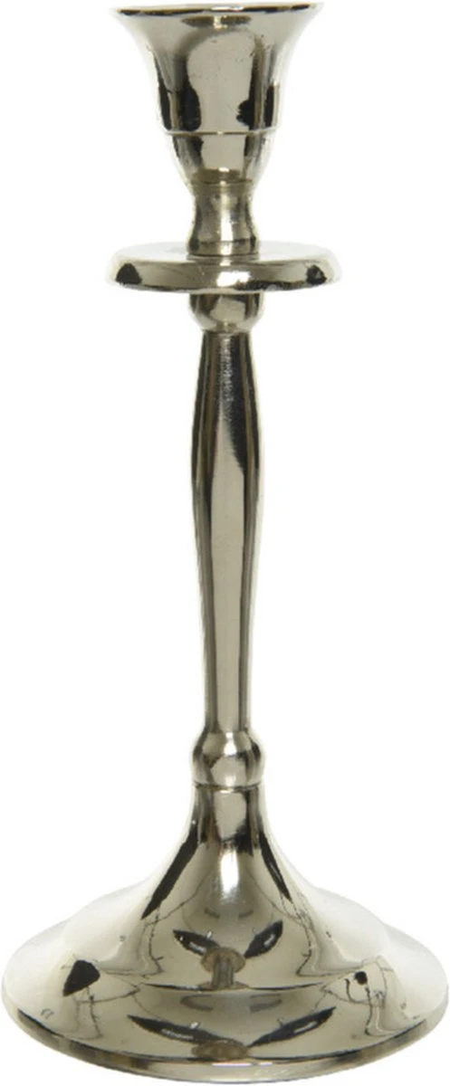 Decoris Set Van 2x Stuks Luxe Diner Kaarsen Staande Kandelaar Aluminium Kleur Zilver 20 Cm – Diameter Onderkant 9 Cm