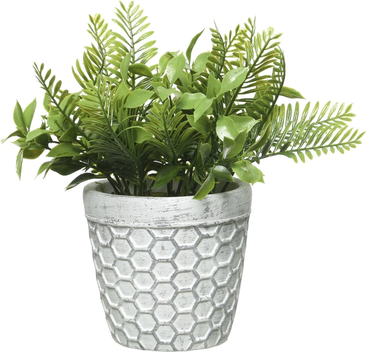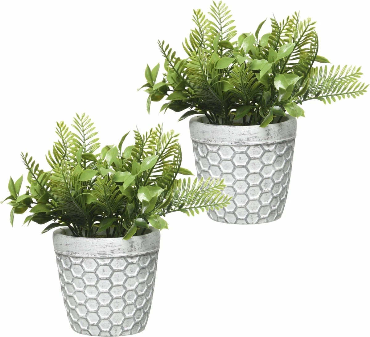 Varen kunstplantje/nepplant in pot 22 cm. Zeer realistisch uitziende, onderhoudsvrije/onderhoudsarme kunstplant met een white wash steenlook plastic/kunststof plantenpot. Materiaal: kunststof/plastic. Formaat plant diameter: 19 cm, hoogte: 22 cm. Inclusief pot: ja, van kunststof. Nepplanten/kunstplanten kamerplanten/kantoorplanten woondecoraties voor in huis of op kantoor.