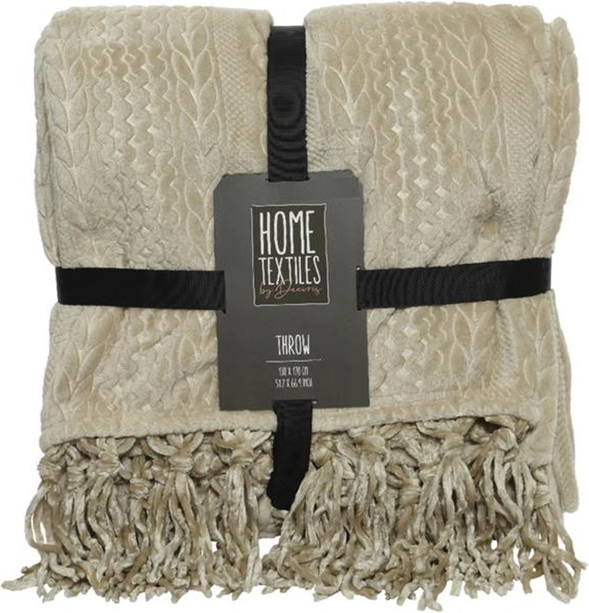 Decoris woondeken polyester taupe met franje 130x170cm